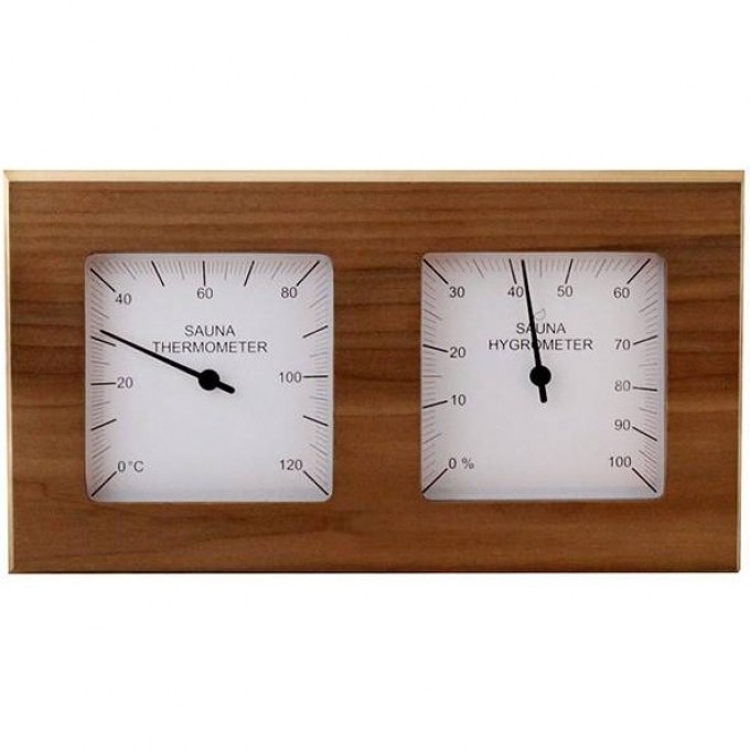 Термогигрометр 224-THD от компании Sawo имеет классическую прямоугольную форму. В широкой рамке из древесины кедра находится два квадратных окошка. Под стеклом каждого окошка расположен графичный циферблат. Один из них - это гигрометр, который с точностью измерит уровень влажности в парной, другой - термометр, который сообщит о температуре воздуха. Данный прибор прекрасно подойдёт для использования в любом парильном помещении. В нашем интернет-магазине представлен широкий ассортимент измерительных приборов в корпусах из разных видов древесины.